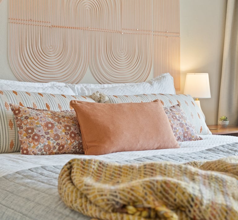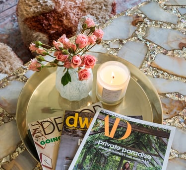 Experience luxury in our poolside villa, featuring bold graphics, luxe finishes, and a serene ambiance with natural elements.